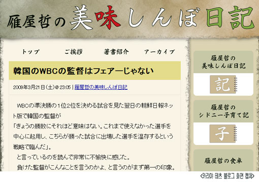 작품‘맛의 달인’으로 국내에도 잘 알려진 일본의 유명 만화가 카리야 테츠가 월드베이스볼클래식(WBC) 한국 대표팀의 김인식 감독을 격한 논조로 비난해 논란이 일고 있다.