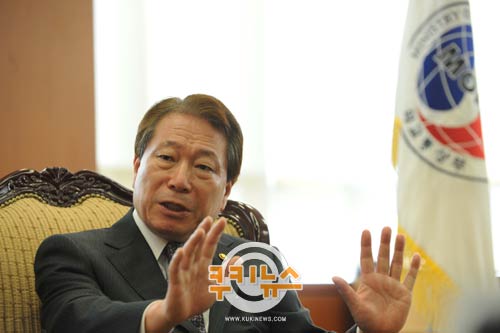 [쿠키 정치] 유명환 외교통상부 장관은 9일 서울 도렴동 외교부 청사에서 본보와 가진 인터뷰에서 일본의 역사교과서 문제에 대해 "하루 아침에 해결될 수 없다"며 "정부와 양심 있는 민간 레벨에서 부단한 교류가 필요하다"고 강조했다.