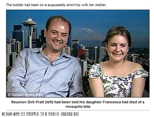 17일 영국 일간 데일리메일에 따르면 미국의 더크 프랫은 27년전 장모로부터 믿을 수 없는 소식을 들었다. 아내와 함께 에콰도르로 여행을 떠났던 자신의 딸 프란체스카가 현지의 독성 모기에 물려 사망했다는 것이었다.