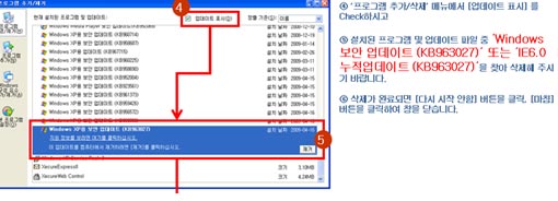 윈도 보안업데이트는 MS가 IE에 대해 새롭게 보고된 보안 취약점을 해결해 주기 위해 사용자 컴퓨터에 자동 설치해주는 소프트웨어다. 따라서 이를 삭제하면 사용자 컴퓨터는 해당 취약점에 고스란히 노출된다. 더구나 MS는 지난 15일 이 업데이트에 대한 공지 사항을 띄우며 이번에 새롭게 보고된 취약점들에 대한 심각도를 ‘긴급’, ‘중요’로 명시했다.