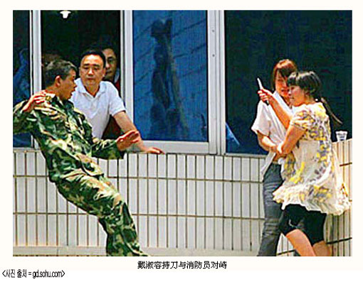 약 20분간 인질극을 벌인 이 여성은 결국 신고를 받고 출동한 경찰과 소방관계자들에 의해 제압됐다.