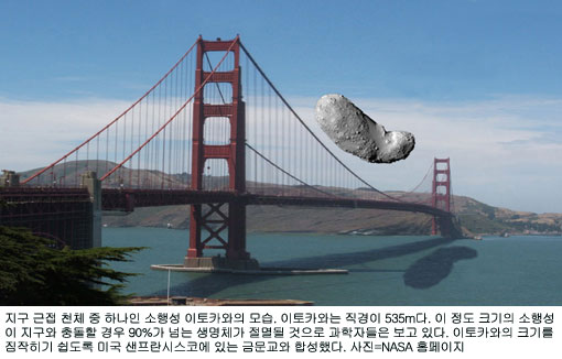 대략 직경이 100m가 넘는 소행성들로 지구로부터 약 0.05AU(1AU는 지구에서 태양까지의 거리로 약 1억5000만KM)안쪽으로 도는 궤도를 가진다. 문제는 소행성들의 궤도가 일정치 않다는 것. 다른 소행성이나 혜성과의 충돌로 순식간에 진로가 바뀌기도 한다. 최근에도 직경 수십m 정도의 소행성 하나가 달궤도 안쪽으로 갑자기 진입해 과학자들을 놀라게 했다. 일주일 전에는 목성표면에서 혜성 충돌로 생긴 흑점이 확인돼 화제가 됐었다.