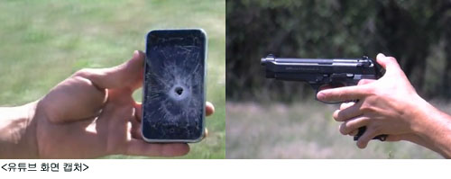 [쿠키 IT] 지난 12일 세계적인 동영상사이트인 유튜브에는 다소 ‘섬뜩한’ 방식으로 자신의 메시지를 전달한 한 남성의 동영상이 화제를 모았다. 이 남성은 사람이 없는 한적한 산 속에서 자신의 아이폰을 마른 나뭇가지 더미 위에 올려놓고 9mm 구경의 권총으로 정확히 명중시켰다. 그리고 이 아이폰을 태워버리기까지 했다.