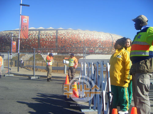 [쿠키 스포츠] 20일(현지시간) 남아공 요하네스버그 사커시티 스타디움에서 열리는 브라질과 코트디부아르의 2010년 남아공월드컵 조별리그 G조 2차전을 앞두고 경기장 수 백 미터 앞에서부터 차량통제를 시작했다.