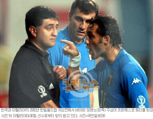 트라파토니 감독은 축구전문매체 ‘트리발풋볼과’의 인터뷰에서 “놀랍지 않다. 이번 사건은 내가 한·일월드컵에서 모레노에 대해 생각했던 모든 것을 확인시켜줬다”며 너스레를 떨었다. 또 ”토티가 레드카드를 받고 퇴장 당했고 다미아노 토마시(텐진 테다)의 득점도 취소됐다”고 편파판정 의혹을 다시 주장한 뒤 “이탈리아는 8강에 오를 자격이 있었다”고 강조했다. 국민일보 쿠키뉴스 김철오 기자 kcopd@kmib.co.kr
