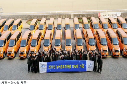 2005년부터 시작된 복지차량 전달식은 주황색 승합차 수십대가 늘어선 인상적인 이미지로 유명해졌다. 짧은 시간에 국내 사회공헌 이벤트의 아이콘으로 자리 잡은 한국마사회 복지차량 전달식은 해마다 기증하는 차량대수를 늘려 행사의 수준을 한층 올렸다. 2005년 50대에서 2006년 63대, 2007년 81대, 2008년 95대, 2009년 1백대에 이어 2010년도에는 무려 105대를 기증하게 됐다.