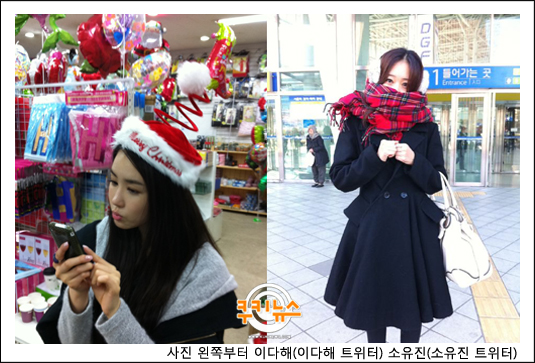 “여신님이 사준 귀마개와 털모자 올겨울 요놈들로 따땃~하게”라는 메시지와 함께 절친한 동료 소유진이 선물한 모자와 귀마개를 끼고 인증 사진을 올렸고, 산타를 연상케 하는 깜찍한 빨간 어그 부츠도 공개했다. 이어 “난 이제 이 모자로 와이파이 잡는다! ㅋㅋ 메리크리스마스”라며 스마트폰을 사용하는 신감각 산타로 변신했다.