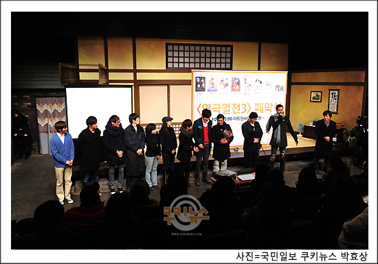 지난 2009월 12월부터 14개월간 열렸던 ‘연극열전3’는 총 8작품 30만 관객과 함께해, ‘연극열전 시리즈’가 누적 관객 수가 100만을 돌파하는 성공을 거두는데 일조했다. 이날 행사에는 조재현, 참여 배우, 연극열전 회원 ‘연애인’등이 참석해 자리를 빛냈다.