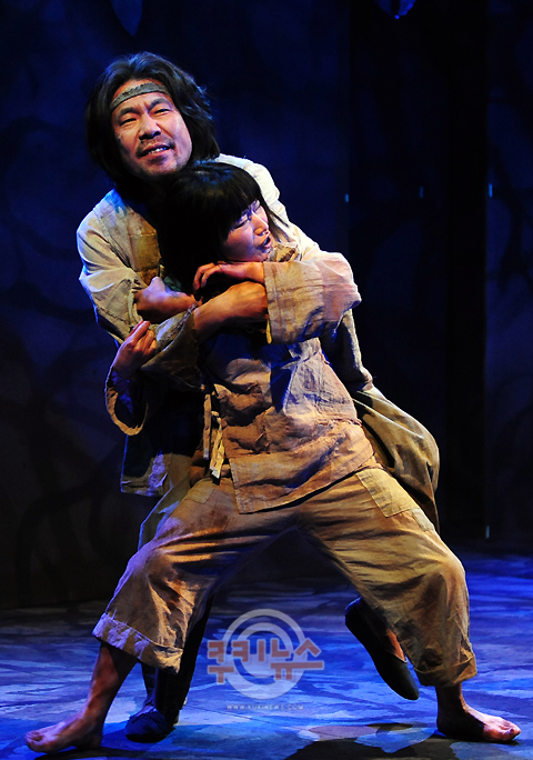 [쿠키 문화] 10일 오후 서울 동숭동 대학로문화공간 이다에서 연극 ‘해님지고 달님안고’프레스콜이 열린 가운데 출연배우가 극 중 한장면을 연기하고 있다.