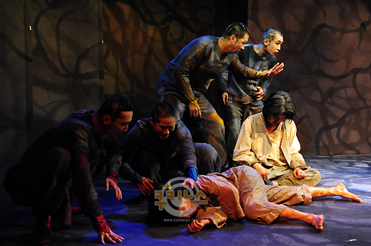 [쿠키 문화] 10일 오후 서울 동숭동 대학로문화공간 이다에서 연극 ‘해님지고 달님안고’ 프레스콜이 열린 가운데 출연배우가 극 중 한장면을 연기하고 있다.