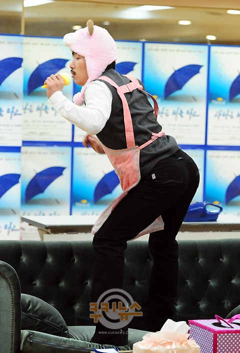 [쿠키 포토] 배우 임춘길이 17일 오후 서울 흥인동 충무아트홀에서 열린 뮤지컬 ‘사랑은 비를 타고’ 연습 현장공개에 참석해 극 중 한장면을 선보이고 있다.