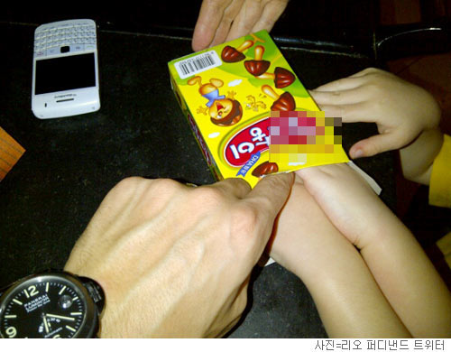 이번엔 아이들이 좋아할 만한 버섯모양 초콜릿 과자를 놓고 서로 먹겠다는 듯 과자상자에 손을 집어넣는 사진을 인증했다. 트위터에는 “한국에서 보내준 초콜릿을 먼저 먹기 위해 세 쌍의 손이 들어갔다. 아이들이 좋아한다(3 pairs of hands all trying to get at these chocolates sent by a generous fan from South Korea! Lil men luv it)”고 적었다.