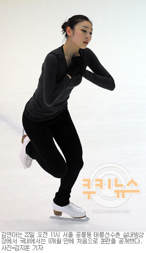 예정대로 대회가 열렸다면 현재 도쿄에서 머물렀어야 했지만 지난 20일 국내로 선회한 김연아는 22일 오전 11시 서울 공릉동 태릉선수촌 실내빙상장에서 첫 국내 훈련을 공개했다. 시즌 내내 준비했던 쇼트프로그램 ‘지젤’을 연기하며 대회 무산의 아쉬움을 달랬다.