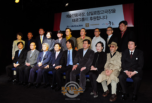 [쿠키 문화] 13일 오전 서울 저동 삼일로 창고극장에서‘태광그룹과 삼일로 창고극장 후원 협약식’이 열렸다. 협약식 후 태광산업 이상훈 대표를 비롯해 연극인, 서울 중구청 공무원들이 기념 촬영을 하고 있다.