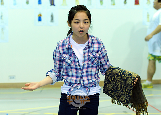 [쿠키 문화] 19일 오후 서울 종로구 연지동 연습실에서 가족뮤지컬 ‘알라딘’ 연습 현장이 공개되었다. 배우 서신애가 극 중 한 장면을 열연하고 있다.