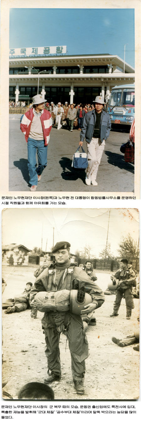 책에는 문 이사장의 남다른 개인사도 담겨 있다. 고교 때 ‘문제아’로 찍혀 유기정학을 당한 경험, 경희대 법대 재학 중 유신반대 시위를 주도해 구속된 일, 강제징집돼 특전사 공수부대에서 31개월 간 군 복무를 했던 체험, 복학 후 다시 학생운동을 하다 현재의 부인과 장인 등 처가 식구들이 다 보는 앞에서 수갑이 채워져 연행됐던 일화, 사법연수원을 차석으로 수료하면서 법무부장관상까지 받았는데도 판사 임용에서 탈락했던 사정 등이 흥미롭다.
