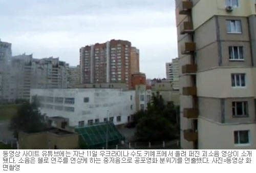 동영상 사이트 유튜브에는 지난 11일 동유럽 우크라이나의 수도 키예프에서 포착된 괴소음 영상이 소개됐다. 아파트에서 한 여성이 촬영한 것으로 보이는 11분24초짜리 영상에서 소음은 반복적으로 울려 퍼진다. 중저음의 첼로 연주를 연상케 하는 이 소음으로 공포영화 같은 분위기가 연출됐다. 그러나 창문이 깨지거나 사람들이 동요하는 등의 모습은 포착되지 않았다.