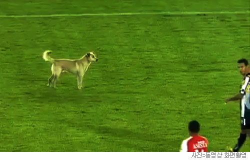 27일 미국 야후 스포츠의 축구전문 블로그 ‘더티 태클(sports.yahoo.com/soccer/blog/dirty-tackle)’에 따르면 26일 콜롬비아에서 열린 산타페(콜롬비아)와 보타포고(브라질)의 대회 16강 2차전에서 후반 22분 개 한 마리가 그라운드에 난입했다.