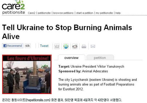 2012년 유럽축구선수권대회(유로2012) 공동개최국 중 하나인 우크라이나에서 동물들을 상대로 잔인한 ‘도시정비’ 작업이 자행되고 있다는 주장이 나왔다.