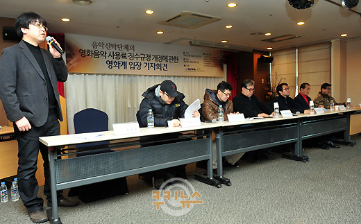 이들은 15일 서울 서대문구 모처에서 기자회견을 개최하고 “영화계는 그동안 저작권법의 취지에 따라 영화를 제작함에 있어 영화에 참가하는 다수의 권리자들의 저작권에 대한 비용을 지불하고 권리관계를 명확히 한 뒤 영화를 제작해 왔다”며 “그러나 2009년 말 한국음악저작권협회(이하 ‘음저협’)에서는 영화가 극장에서 상영될 때 ‘공연료’ 징수를 신설하고, 소급적용하겠다는 통보를 했다. 이에 영화계는 TF를 구성해 성실하게 협상에 대응해 왔으나, 협상 중에 롯데시네마를 형사고발하고, 2012년 1월 음저협을 비롯한 한국음원제작자협회(이하 ‘음제협’), 한국음악실연자협회(이하 ‘음실연’)에서는 영화음악에 대한 사용료 징수규정 개정안을 문화체육관광부에 신청했다”며 공동 대응을 하게 된 배경을 설명했다.