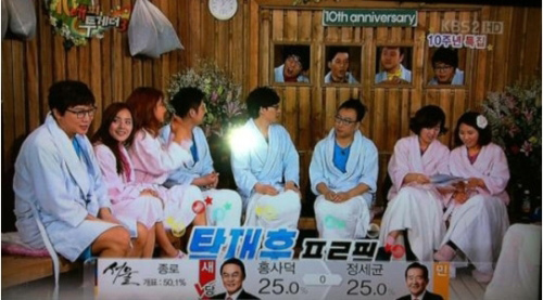 KBS는 11일 오후 4시쯤 방송된 ‘해피투게더 스페셜’ 방송 도중 새누리당 후보가 당선됐다는 내용의 자막을 내보냈다.