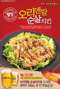 ‘오리엔탈순살치킨’은 뼈 없는 국내산 닭다리살에 바삭한 튀김옷을 입히고, 새콤달콤한 오리엔탈 소스를 가미하여 샐러드와 함께 버무려 먹는 새로운 컨셉의 웰빙메뉴이다. 이번 신제품 출시를 기념하여 참숯바베큐는 5월10일부터 6월24일까지 오리엔탈순살치킨 주문시 시원한 생맥주 500cc 한잔을 무료로 제공한다. 국민일보 쿠키뉴스 조규봉 기자 ckb@kmib.co.kr