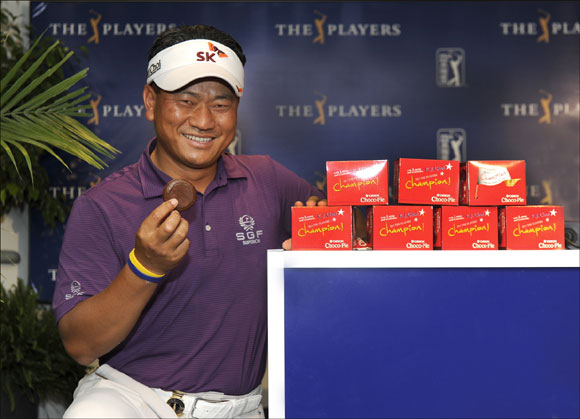 [쿠키 건강] 오리온은 2012 플레이어스 챔피언십(2012 Players Championship)에서 전년도 우승자인 최경주 선수가 현지 참가자들에게 초코파이를 깜짝 선물로 증정했다고 10일 밝혔다.