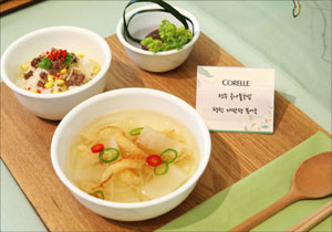 코렐 코리안웨어 ‘국대접’은 그릇의 옆면이 약 10°로 오목하게 좁아져 한국인의 대표적인 상차림 메뉴인 ‘국’을 편리하게 담을 수 있는 오목한 형태다. 또 ‘국’의 깊은 맛을 더욱 오랫동안 유지시킬 수 있도록 한식 상차림에 가장 적합하게 디자인 됐다.