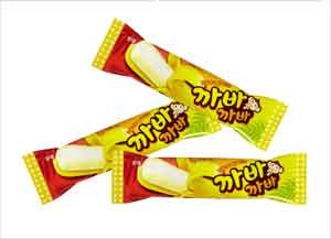 [쿠키 건강] 롯데제과는 바나나처럼 벗겨먹는 아이스크림 ‘까바까바’를 선보였다. 까바까바는 바나나와 유사한 형태지만 껍질까지 먹을 수 있는 이색 아이스크림이다.