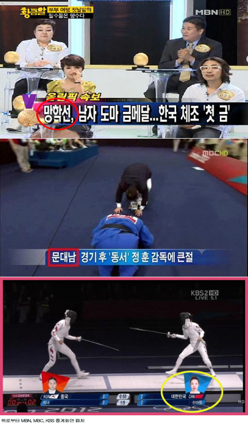 MBC가 유도 금메달리스트 송대남 선수의 이름을 ‘문대남’으로, KBS가 신아람 선수의 국적을 중국으로 표기하더니 종합편성채널 MBN은 우리나라 사상 첫 체조 금메달의 쾌거를 이룩해낸 양학선 선수를 ‘망학선’으로 내보내 질타를 받고 있다.