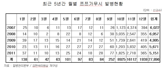 연간 감염자 5000명 이상 발생… 10월~12월 96.7%발병