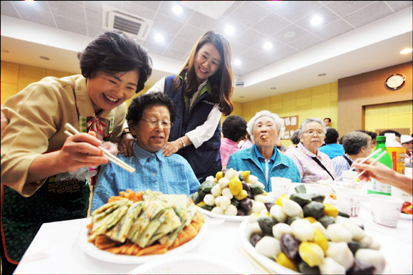20일 노원구 상계동에 위치한 북부종합사회복지관에서는 ‘한가위맞이 어울림 한마당 경로잔치’ 행사를 열어 300여 명의 노인들에게 명절 음식을 대접하는 행사를 가졌다. 또 팔도 앵그리 꼬꼬면 선물세트도 증정했다. 국민일보 쿠키뉴스 조규봉 기자 ckb@kmib.co.kr
