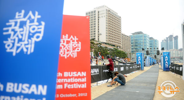 [쿠키 영화] 5일 오후 부산 해운대 비프빌리지에서 저녁 행사 준비가 한창이다.