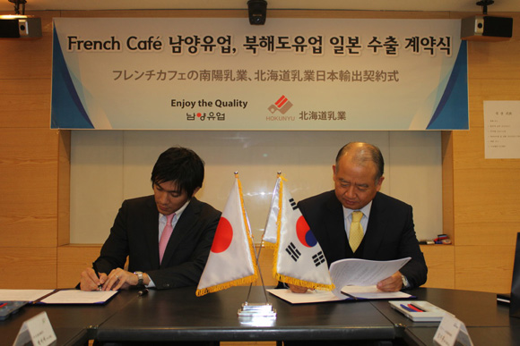 이와 관련 남양유업의 김웅 대표와 북해도유업의 타지마히데히사 대표 등이 참석한 가운데 지난 24일 남양유업 본사에서 수출 계약식을 가졌다.