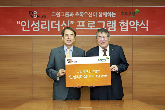 [쿠키 건강] 교원그룹은 7일 서울 중구 교원그룹 사옥에서 초록우산 어린이재단(이하 어린이재단)과 사회공헌 프로그램인 ‘인성리더십’ 실시를 위한 업무협약(MOU)를 체결했다. 교원그룹은 최근 사회적 문제가 되고 있는 학교폭력, 왕따 등의 해결방안으로 인성교육이 중요시됨에 따라 인성리더십 프로그램을 통해 교육기업으로서 사회적 책임을 다하고자 이번 프로그램을 계획했다. 또한 지속적으로 바른 인성 교육을 통해 어린이 관련 사회적 문제 해결에 적극 동참할 계획이다.