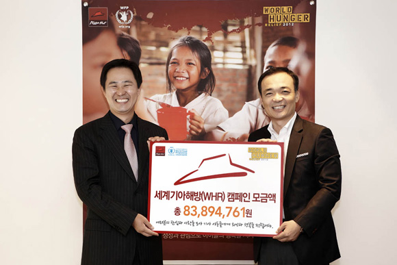 피자헛은 지난 10월 4일부터 31일까지 약 한 달간 기아 돕기 특별 메뉴인 ‘WHR 샘플러’ 및 ‘WHR 특별 세트 메뉴’를 판매해 기아 돕기 기금으로 6800여만원을 적립했다.