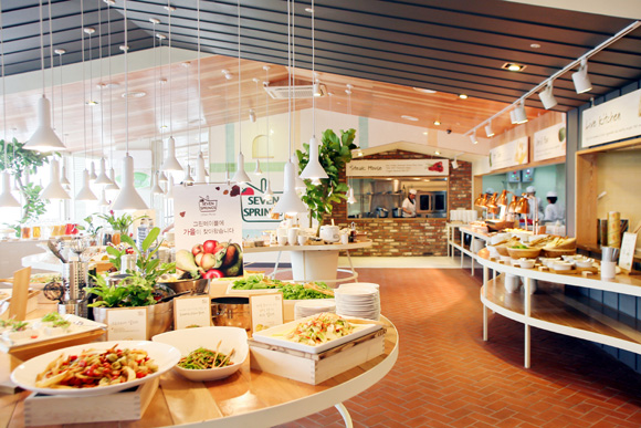 세븐스프링스 광화문점에서는 신선한 제철 재료를 사용한 샐러드 등 70 여가지 메뉴를 즐길 수 있다. 특히 매장 내 마련된 ‘프리미엄 카페 섹션’에서는 전문 바리스타가 직접 만든 에스프레소, 카페라떼, 카푸치노 등 다양한 커피를 무제한으로 제공한다. 기념행사로 오픈 당일 방문 고객을 대상으로 충남 예산에서 직거래한 친환경 사과를 증정할 예정이다.