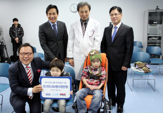 메리츠화재가 기탁한 성금 2000만원은 이 병원에서 치료중인 이모(8) 환아와 공모(6) 환아에게 각각 1000만원씩 전달됐다.