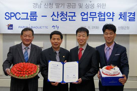[쿠키 건강] 파리크라상의 대표 브랜드 파리바게뜨가 27일 오전 산청군과 우수한 품질의 산청 딸기 사용 및 상생을 위한 업무협약(MOU)을 체결했다.