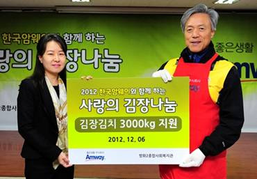 [쿠키 건강] 한국암웨이는 6일 연말을 맞아 임직원과 신입사원들이 함께 ‘사랑의 김장나눔’ 활동을 진행했다.