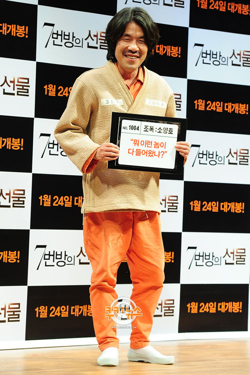 ‘7번방의 선물’은 각종 전과로 구속된 흉악범들이 가득한 교도소 7번방에 지능이 낮은 주인공 이용구가 입소하며 벌어지는 일을 그렸다. 배우 류승룡, 박신혜, 갈소원, 오달수, 박원상, 김정태, 정만식, 김기천 등이 출연한다. 오는 2013년 1월 개봉 예정.