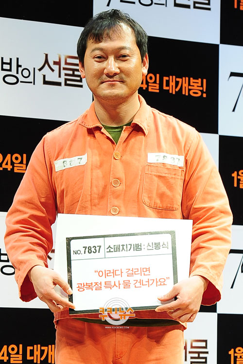 ‘7번방의 선물’은 각종 전과로 구속된 흉악범들이 가득한 교도소 7번방에 지능이 낮은 주인공 이용구가 입소하며 벌어지는 일을 그렸다. 배우 류승룡, 박신혜, 갈소원, 오달수, 박원상, 김정태, 정만식, 김기천 등이 출연한다. 오는 2013년 1월 개봉 예정.