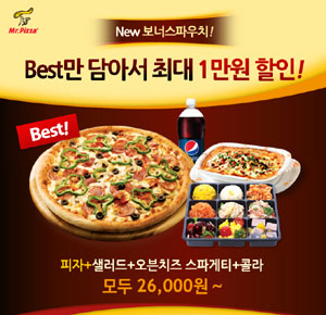[쿠키 건강] 미스터피자는 ‘다독이피자’와 ‘홈샐러드’ 등 미스터피자의 인기메뉴로 구성된 세트메뉴 ‘보너스파우치’를 새롭게 선보인다.