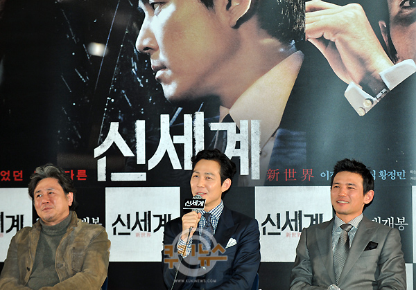 [쿠키 영화] 배우 최민식과 이정재, 황정민(사진 왼쪽부터)이 6일 오후 서울 CGV 왕십리에서 열린 영화 ‘신세계’(감독 박훈정, 제작 사나이픽처스) 언론시사회에 참석했다.