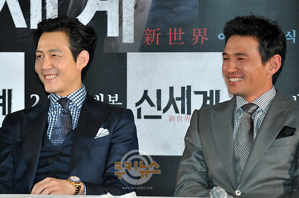 [쿠키 영화] 배우 이정재, 황정민이 6일 오후 서울 CGV 왕십리에서 열린 영화 ‘신세계’(감독 박훈정, 제작 사나이픽처스) 언론시사회에 참석했다.