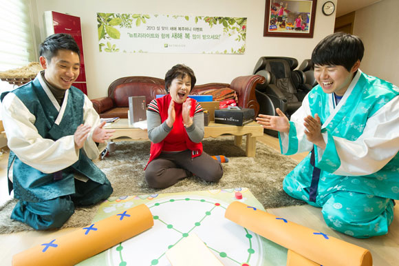 이날 뉴트리라이트는 뉴트리보이와 썰매개를 동원해 이용대(배드민턴), 진종오(사격) 선수와 후배양성에 힘쓰고 있는 현정화 감독(탁구)의 부모님 댁을 각각 방문하고, 초대형 윷놀이를 통해 복주머니를 선물했다. 대형 복주머니에는 선수들이 직접 작성한 감사 카드와 함께 건강기능식품 뉴트리라이트 제품, 떡 케이크, 선수 및 가족의 캐리커쳐 인형 등을 담아 풍성한 명절과 건강을 기원했다.