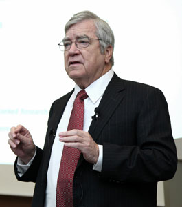 [쿠키 경제] 미국 텍사스 주립대 부총장이자 마케팅 분야 석학인 ‘로버트 피터슨(Robert A. Peterson)’ 교수(사진)가 7일 서울대학교 초청 강연에서 동반성장위의 프랜차이즈 규제에 대한 견해를 밝혀 화제를 낳고 있다.