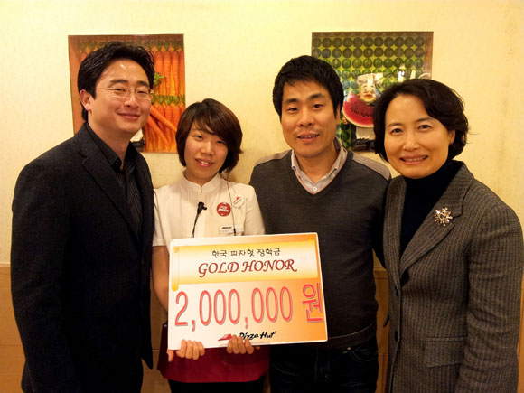 [쿠키 건강] 한국 피자헛이 매장에서 근무하는 파트타임 대학생과 고등학생 23명에게 총 1200만원의 장학금을 전달했다고 15일 밝혔다.