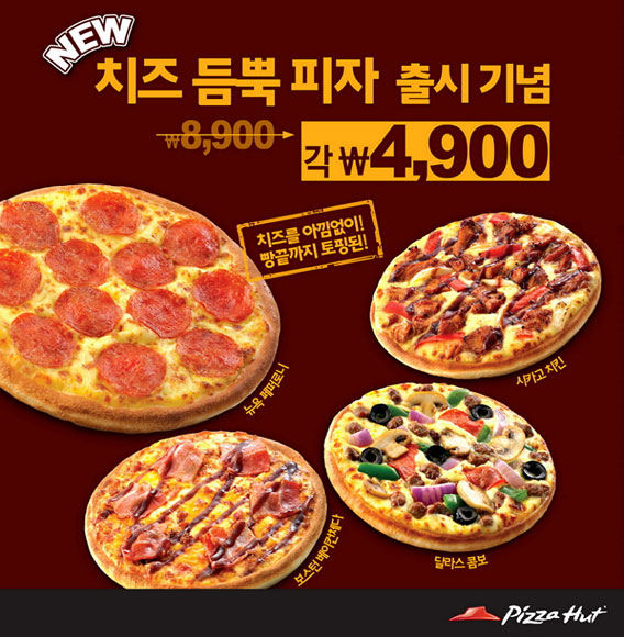피자헛은 치즈 듬뿍 피자 4종을 4900원에 판매하는 특가 이벤트를 4월까지 실시한다. 이번 행사는 피자헛 페이스북에서 이틀간 1만 건 이상의 ‘좋아요’를 기록하는 등 새로워진 스마트 런치에 대한 팬들의 뜨거운 관심에 보답하고자 마련됐으며, 전국 피자헛 레스토랑 매장(코엑스, 신도림 테크노마트, 부산롯데광복, 부산롯데서면점 제외)에서 실시된다. 국민일보 쿠키뉴스 조규봉 기자 ckb@kmib.co.kr
