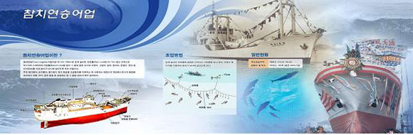 ◇연승어법=참치연승은 총 길이 약 150km의 모릿줄에 50~70m간격으로 수천개의 아릿줄을 달아 그 끝에 오징어, 고등어, 꽁치 등 미끼를 끼워 낚시에 걸리도록 하는 어법이다. 주로 참다랑어, 눈다랑어 같은 횟감용 고급 참치를 잡는데 쓰인다. 배가 달리면서 모릿줄을 내림과 동시에 잡아 올린다.